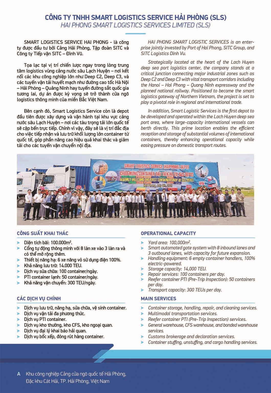 Công ty TNHH Smart Logistics Services Hai Phong 1. Tên giao dịchCÔNG TY TNHH SMART LOGISTICS SERVICE HẢI PHÒNG- Địa chỉ: Khu công nghiệp Cảng cửa ngõ quốc tế Hải Phòng, Đặc khu Cát Hải, thành phố Hải Phòng2. Vị trí địa lý3. Các Dịch vụ chính và cơ sở vật chất 6. Một số hình ảnh của Công ty Xem thêm