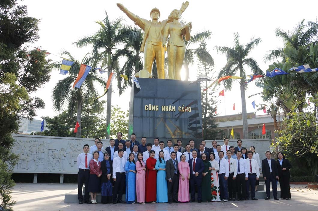 Đoàn Đại biểu thăm và chụp ảnh lưu niệm tại khu tượng đài Công nhân Cảng