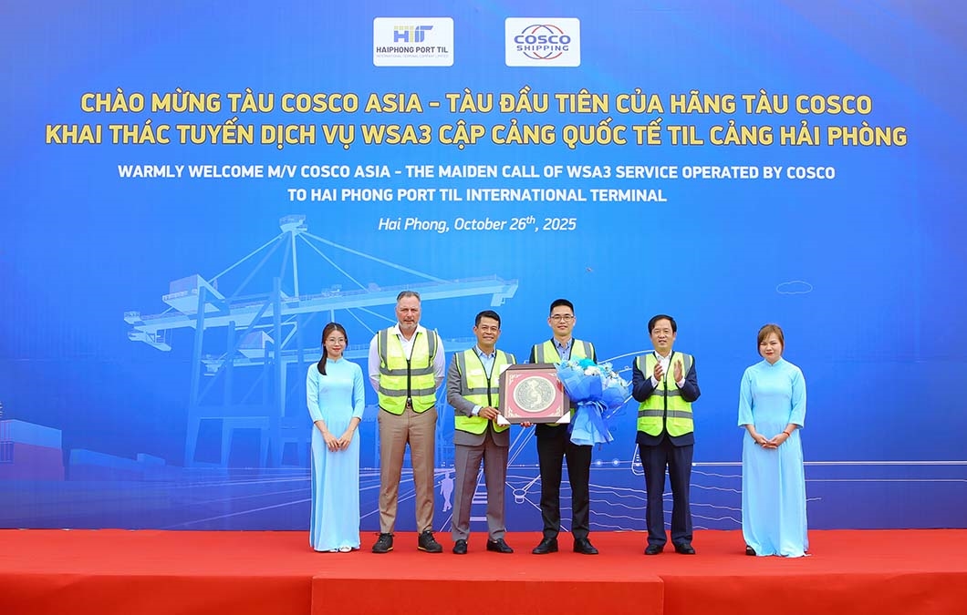 Sáng nay, Cảng Quốc tế TIL Cảng Hải Phòng (HTIT) đã tổ chức Lễ chào mừng tàu COSCO ASIA, đánh dấu chuyến tàu đầu tiên của tuyến dịch vụ mới WAS3 do Hãng tàu COSCO SHIPPING Lines khai thác. Sự kiện này không chỉ là một bước tiến quan trọng của cảng HTIT (Cảng Hải Phòng) mà còn mở ra nhiều cơ hội kết nối hàng hải mới giữa Việt Nam và các thị trường tiềm năng ở Nam Mỹ.