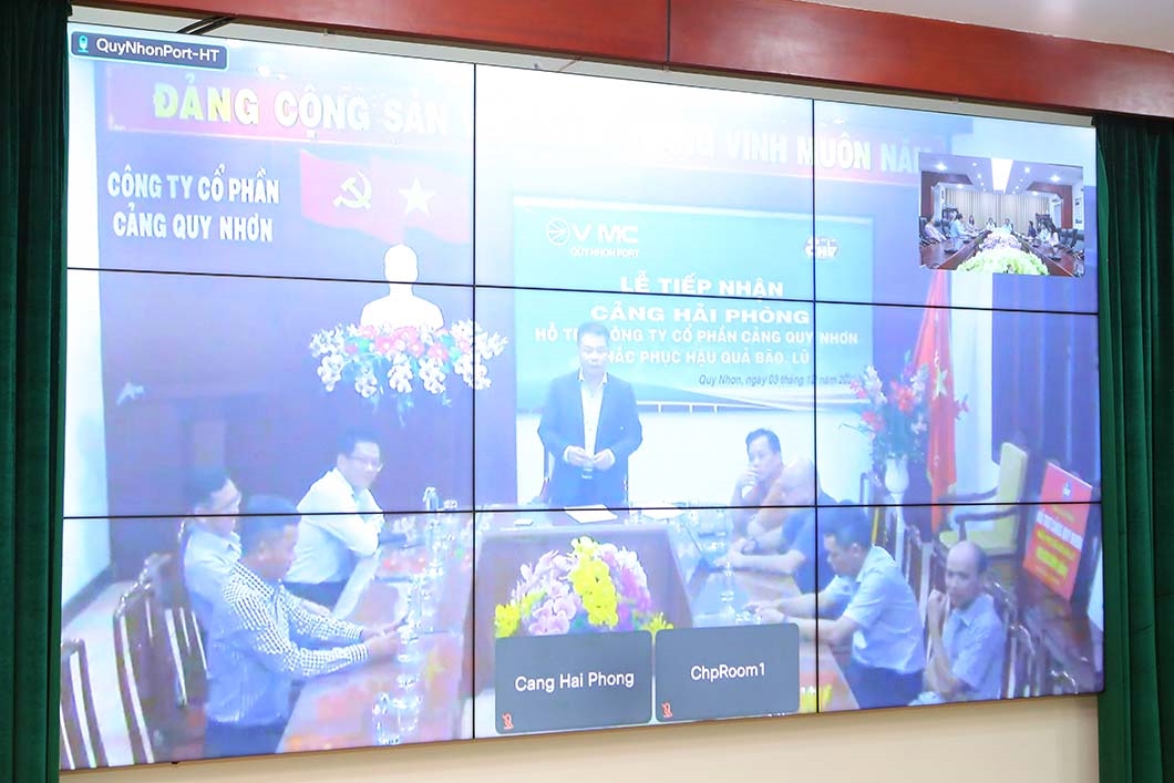 Chiều ngày 03/12/2025, lễ trao hỗ trợ được tổ chức trực tuyến giữa hai điểm cầu Hải Phòng và Quy Nhơn. Tham dự tại điểm cầu Cảng Hải Phòng có ông Phạm Hồng Minh - Bí thư Đảng ủy, Chủ tịch HĐQT; ông Nguyễn Tường Anh - Phó Bí thư Đảng ủy, Thành viên HĐQT, Tổng Giám đốc; ông  Tô Đình Sơn - Chủ tịch Công đoàn Công ty cùng Ban Điều hành và lãnh đạo các phòng ban, đơn vị. Tại điểm cầu Cảng Quy Nhơn có ông Lê Hồng Quân - Tổng Giám đốc Công ty; ông Nguyễn Ngọc Tới - Thành viên HĐQT chuyên trách; ông Đặng Văn Hòa - Chủ tịch Công đoàn Công ty, cùng Ban lãnh đạo và đại diện người lao động.