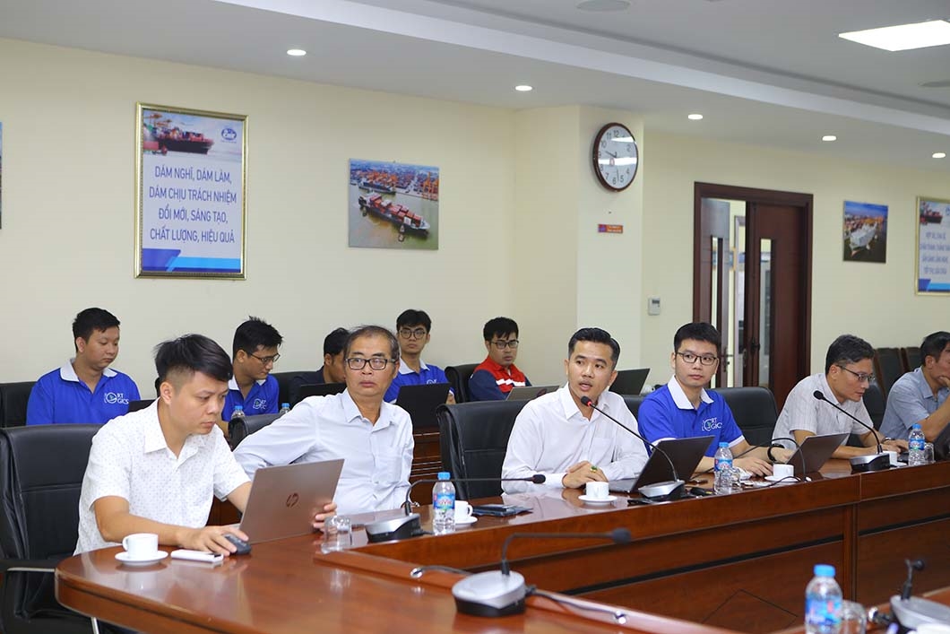 Đại diện Nhà thầu (Công ty Cổ Phần Giải pháp Cảng và Hậu cần PLC) giới thiệu về các tính năng trên Ứng dụng