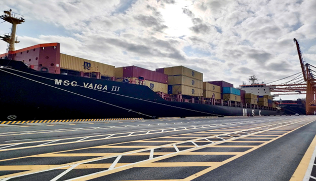 Tàu MSC VAIGA III đang khai thác tại cảng HTIT chiều cuối cùng của năm Ất Tỵ