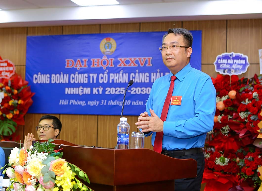 Phát biểu chỉ đạo tại Đại hội, Chủ tịch Công đoàn Tổng công ty Mai Lê Lợi đánh giá cao những kết quả đạt được của Ban Chấp hành Công đoàn Cảng Hải Phòng giai đoạn 2023 - 2025 trong việc thực hiện quy chế dân chủ ở cơ sở tại nơi làm việc, công tác kiểm tra, giám sát việc thực hiện pháp luật lao động, các chế độ chính sách được các cấp công đoàn trong toàn Cảng quan tâm thực hiện, đảm bảo quyền lợi hợp pháp, chính đáng của đoàn viên, NLĐ được thực thi nghiêm túc, kịp thời. Công đoàn Cảng Hải Phòng đã thực sự thực hiện được chức năng đại diện bảo vệ quyền lợi hợp pháp, chính đáng cho NLĐ, tham gia quản lý doanh nghiệp, làm tốt công tác tuyên truyền giáo dục, tổ chức các phong trào thi đua yêu nước, xây dựng đội ngũ và tổ chức công đoàn vững mạnh; làm chỗ dựa tin cậy cho NLĐ, đóng góp xứng đáng vào việc hoàn thành các nhiệm vụ chính trị, kinh tế - xã hội của Cảng Hải Phòng.