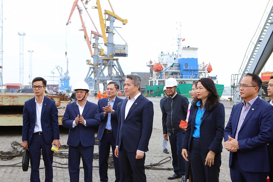 Tại Cảng HTIT, lãnh đạo Tổng công ty đã nghe đơn vị báo cáo nhanh về tình hình sản xuất, công tác bảo đảm an toàn và phương án tổ chức trực Tết. Đồng chí Nguyễn Cảnh Tĩnh ghi nhận, biểu dương những nỗ lực của tập thể cán bộ, người lao động trong điều kiện khai thác đặc thù của cảng nước sâu – cửa ngõ chiến lược của khu vực phía Bắc.