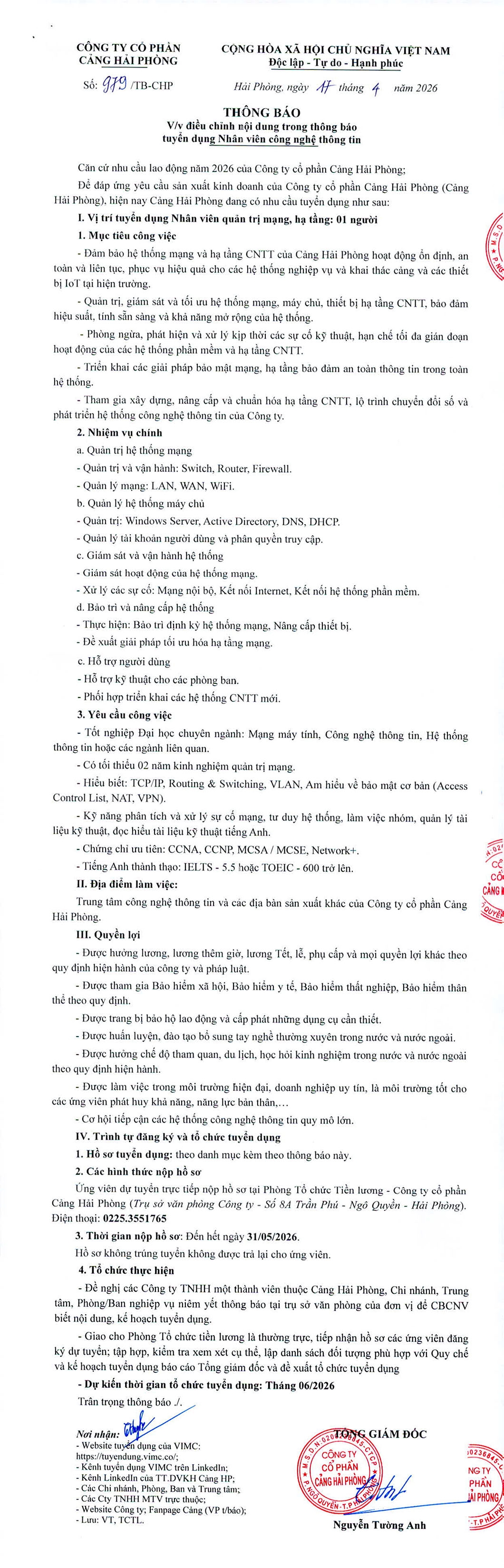 17/04/2026 Thông báo điều chỉnh nội dung trong thông báo tuyển dụng nhân viên Công nghệ thông tin Chi tiết xem thêm tại đây Xem thêm