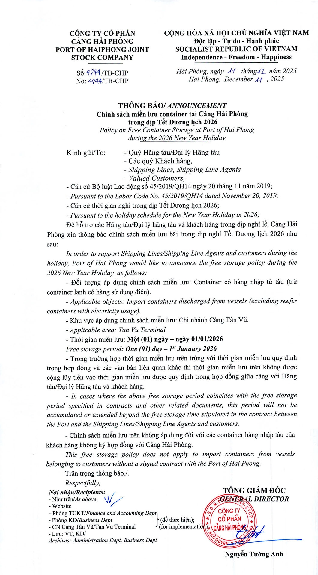 Port of Hai Phong joint stock company 1800.55.55.22