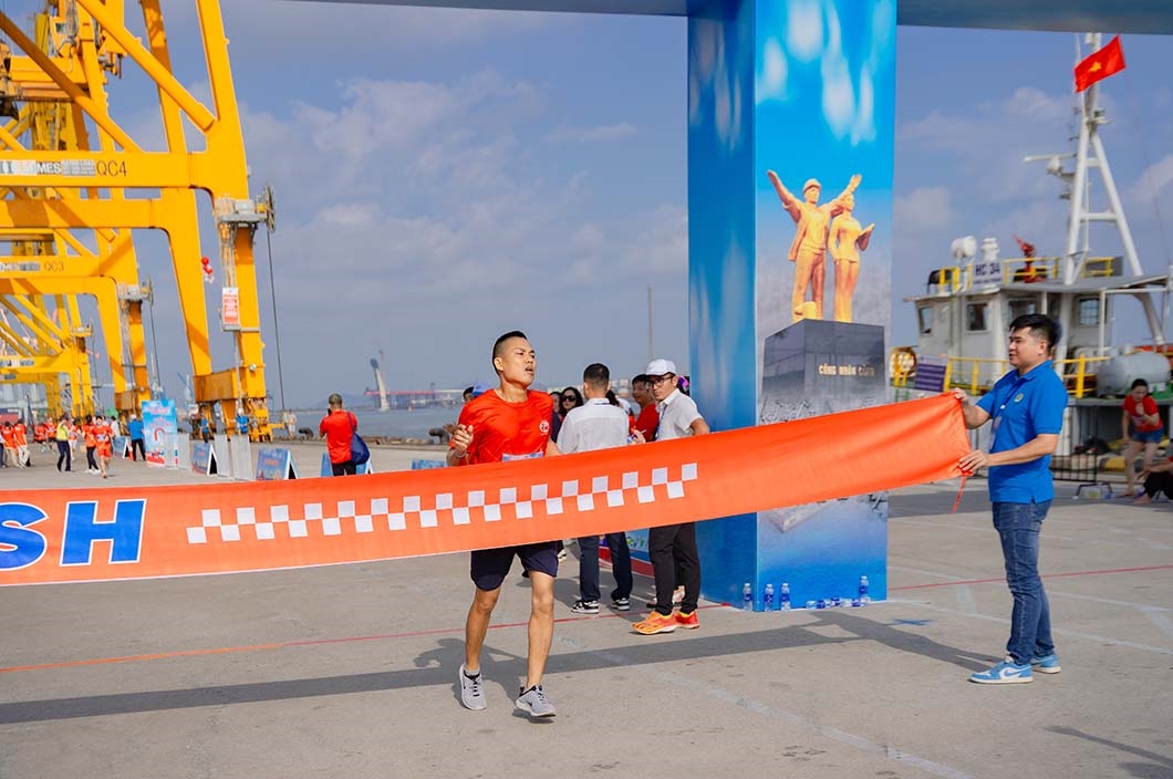 Vận động viên cán đích đầu tiên nội dung thi đấu cự ly 5000m - một CBCNV của Công ty cổ phần Đầu tư và Phát triển Cảng Đình Vũ