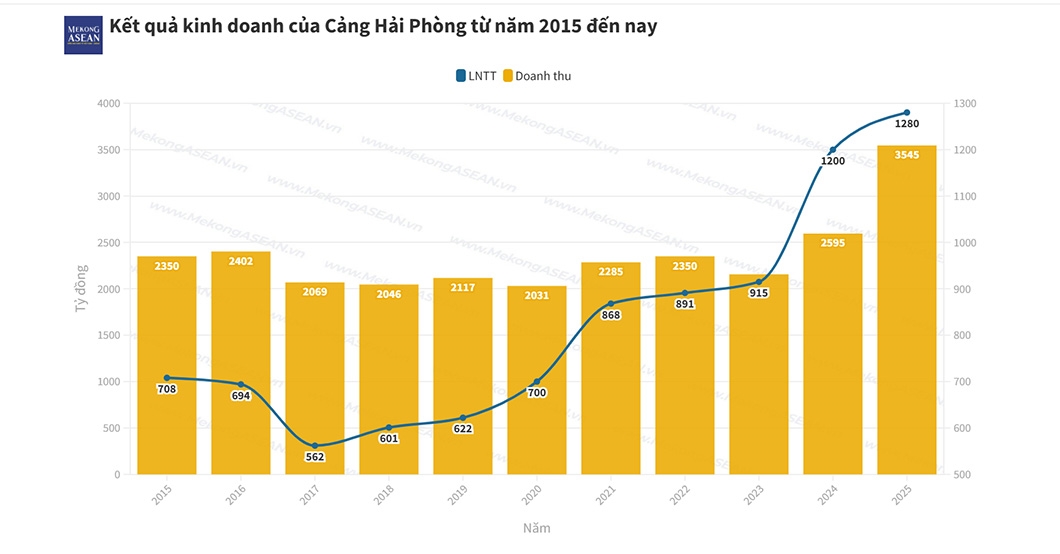 Cảng Hải Phòng là đơn vị vận hành hệ thống cảng lớn tại TP Hải Phòng thuộc Tổng Công ty Hàng hải Việt Nam – CTCP (VIMC), bao gồm cảng Hoàng Diệu Chùa Vẽ, Đình Vũ, Tân Vũ và cảng quốc tế TIL Cảng Hải Phòng (HTIT- Bến 3,4 Lạch Huyện). Giai đoạn 2019 - 2024 ghi nhận đà tăng trưởng mạnh mẽ của Cảng Hải Phòng, với lợi nhuận liên tục gia tăng qua các năm, từ 503 tỷ đồng năm 2019 lên 975 tỷ đồng năm 2024. Lũy kế cả năm 2025, tổng doanh thu của PHP đạt 3.545 tỷ đồng, lợi nhuận trước thuế đạt 1.280 tỷ đồng, tương ứng tăng 36,6% và 6,7% so với cùng kỳ năm trước.
