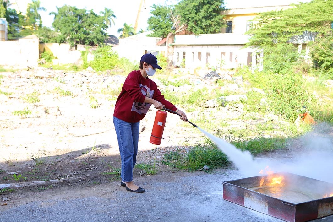 Bên cạnh phần lý thuyết, học viên được thực hành xử lý các tình huống giả định dưới sự hướng dẫn trực tiếp của cán bộ PCCC: thao tác sử dụng bình bột, bình CO₂ để dập tắt khay xăng cháy; vận hành các phương tiện PCCC tại chỗ; kỹ năng tiếp cận, di chuyển người bị nạn khỏi khu vực nguy hiểm; thực hành sơ cấp cứu ban đầu trong các tình huống khẩn cấp.