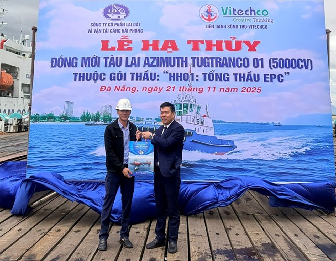Sáng ngày 21/11/2025, Công ty Cổ phần Lai dắt và Vận tải Cảng Hải Phòng phối hợp cùng Liên danh nhà thầu Sông Thu – Vitechco tổ chức Lễ hạ thủy tàu lai Azimuth TUGTRANCO 01 công suất 5.000 HP. Đây là công trình thiết thực chào mừng Kỷ niệm 96 năm Ngày Truyền thống “Đoàn kết – Kiên cường – Sáng tạo” của Đảng bộ và Đội ngũ công nhân Cảng Hải Phòng (24/11/1929 – 24/11/2025) và Ngày thành lập Chi bộ Đảng đầu tiên (28/11/1929 – 28/11/2025).