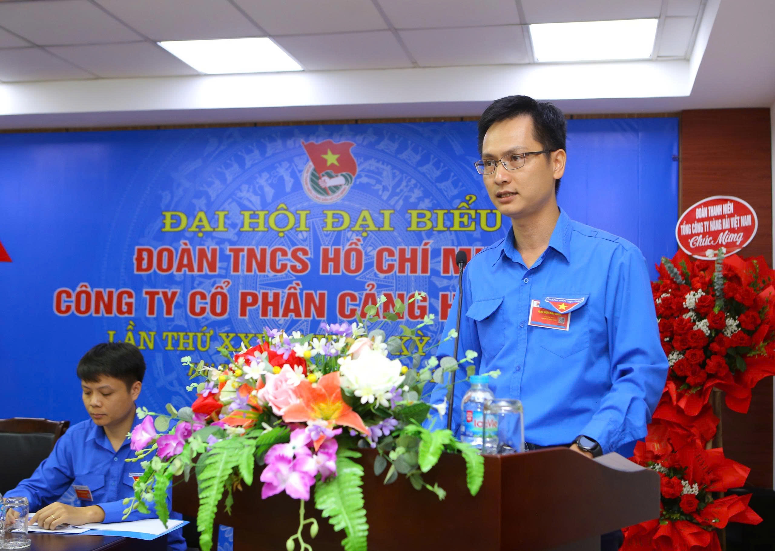 Đồng chí Bùi Quang Hưng – Bí thư Đoàn Thanh niên Cảng Hải Phòng khoá XXV phát biểu khai mạc Đại hội
