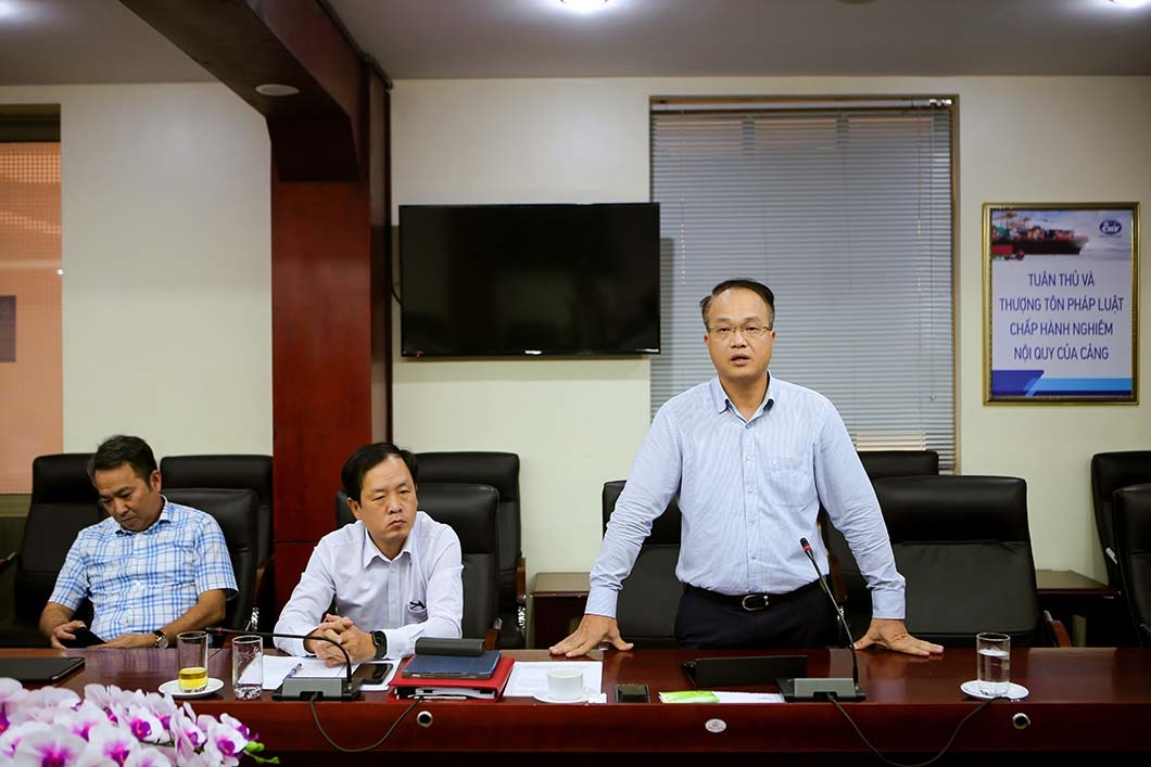 Đồng chí Phạm Hồng Minh – Ủy viên Ban Thường vụ Đảng ủy Tổng Công ty Hàng hải Việt Nam, Bí thư Đảng ủy, Chủ tịch Hội đồng quản trị Cảng Hải Phòng phát biểu kết luận Hội nghị