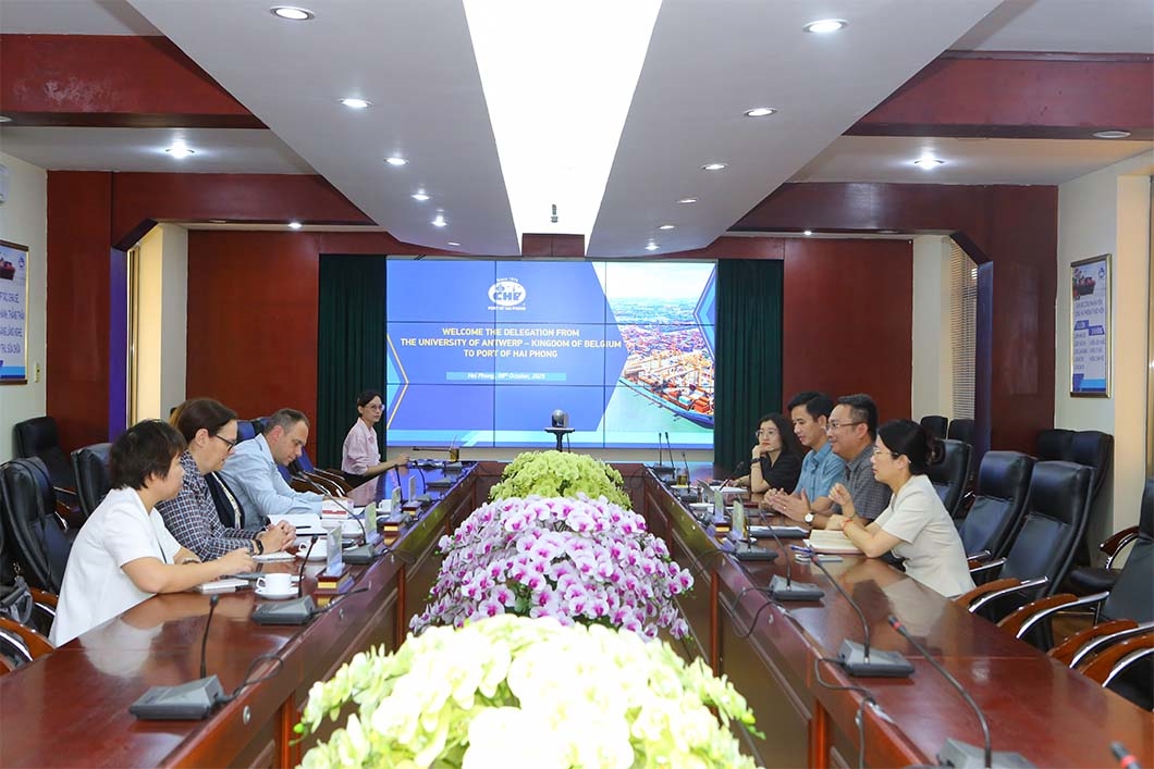 Tại buổi làm việc, hai bên đã trao đổi về quá trình hợp tác giữa Cảng Hải Phòng và Trung tâm Đào tạo Nghiệp vụ Cảng biển APEC vùng Flander trong lĩnh vực đào tạo chuyên gia hàng hải và quản lý khai thác cảng. Đồng thời, hai bên cũng thảo luận về định hướng phát triển cảng xanh, cảng thông minh và các giải pháp nâng cao tính bền vững trong hoạt động khai thác, phù hợp với xu thế phát triển của ngành cảng biển toàn cầu.