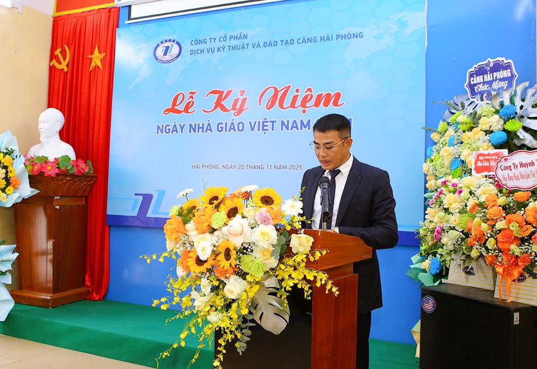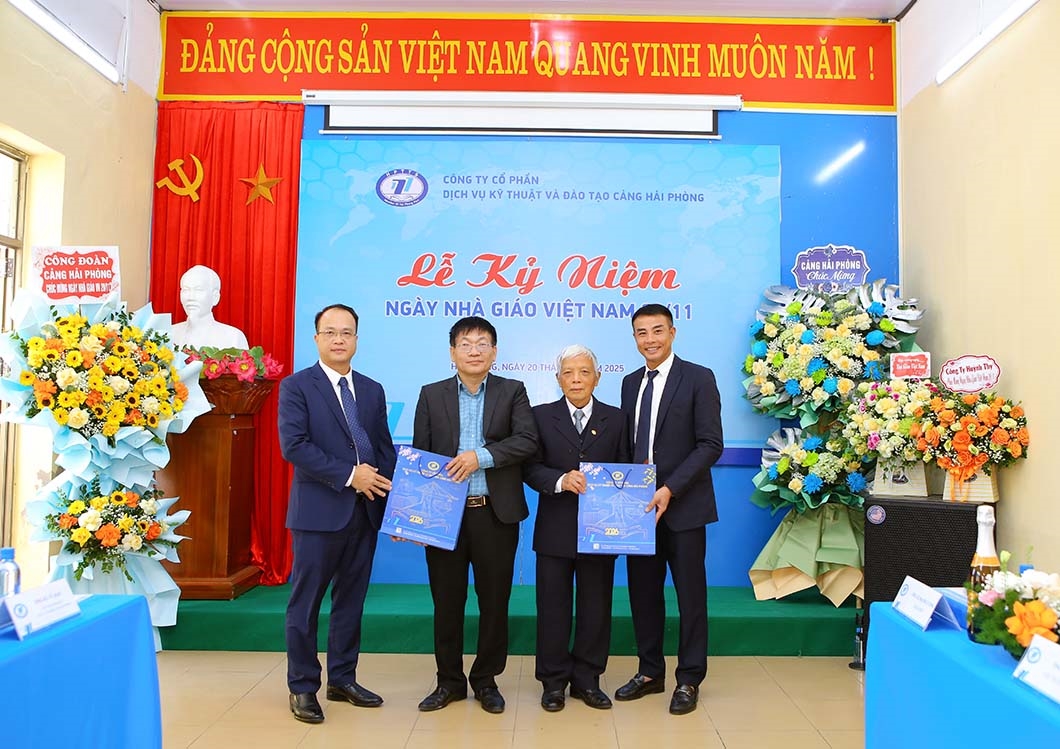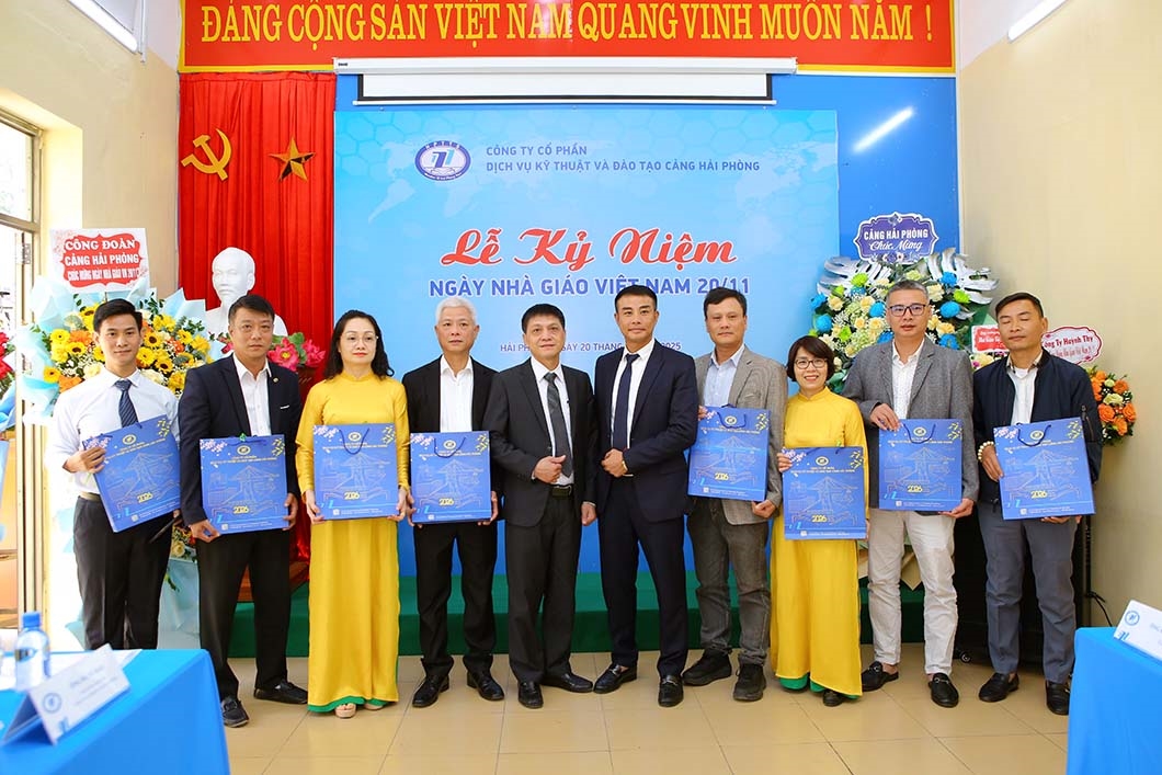 Hòa chung không khí phấn khởi chào mừng ngày Nhà giáo Việt Nam, ngày 20/11, Đoàn đại biểu Cảng Hải Phòng do đồng chí Phạm Hồng Minh - Bí thư Đảng uỷ, Chủ tịch HĐQT dẫn đầu đã tới tham dự Lễ kỷ niệm 43 năm ngày Nhà giáo Việt Nam (20/11/1982 - 20/11/2025) tại Công ty cổ phần Dịch vụ Kỹ thuật và Đào tạo Cảng Hải Phòng.