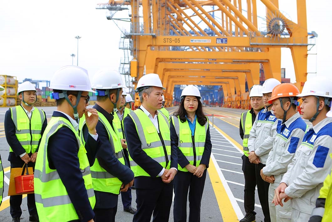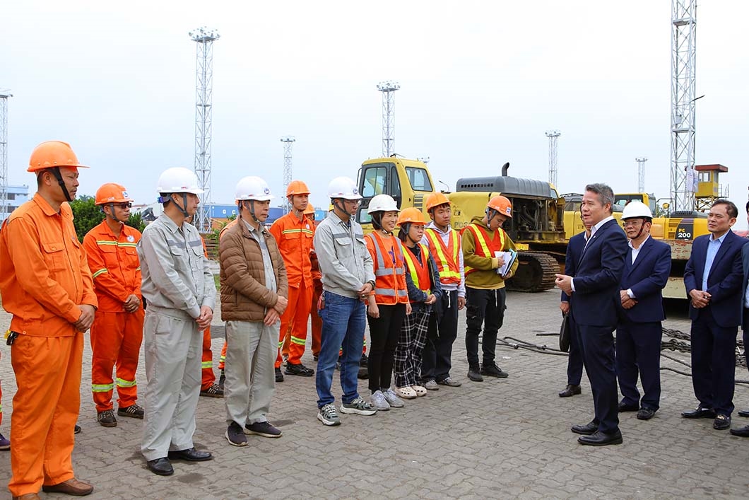 Tại Cảng HTIT, lãnh đạo Tổng công ty đã nghe đơn vị báo cáo nhanh về tình hình sản xuất, công tác bảo đảm an toàn và phương án tổ chức trực Tết. Đồng chí Nguyễn Cảnh Tĩnh ghi nhận, biểu dương những nỗ lực của tập thể cán bộ, người lao động trong điều kiện khai thác đặc thù của cảng nước sâu – cửa ngõ chiến lược của khu vực phía Bắc.