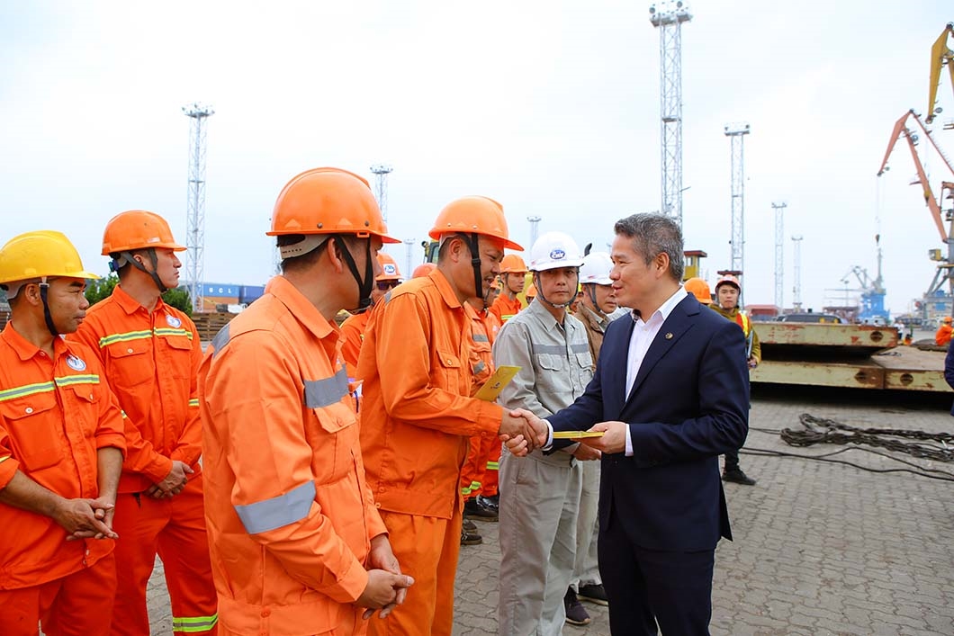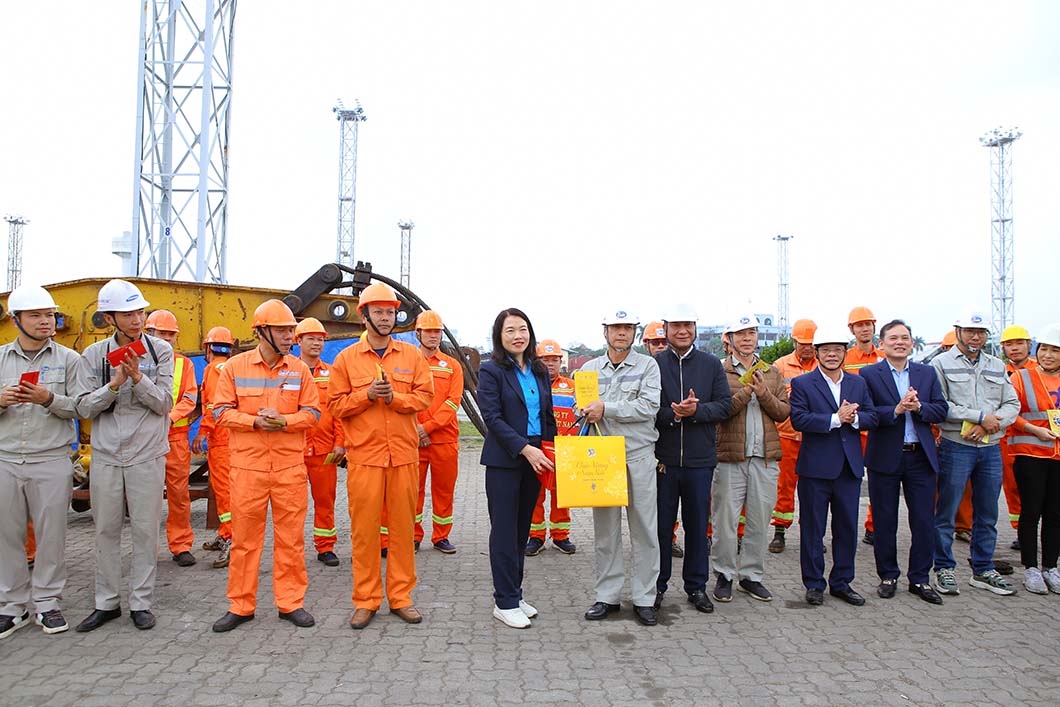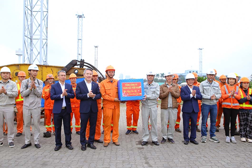 Nhân dịp này, Đoàn công tác đã trao quà chúc Tết của Tổng công ty và Công đoàn Tổng công ty tới tập thể cán bộ, người lao động Cảng HTIT và Cảng Hoàng Diệu Chùa Vẽ; trao lì xì may mắn cho công nhân đang làm việc tại hiện trường.