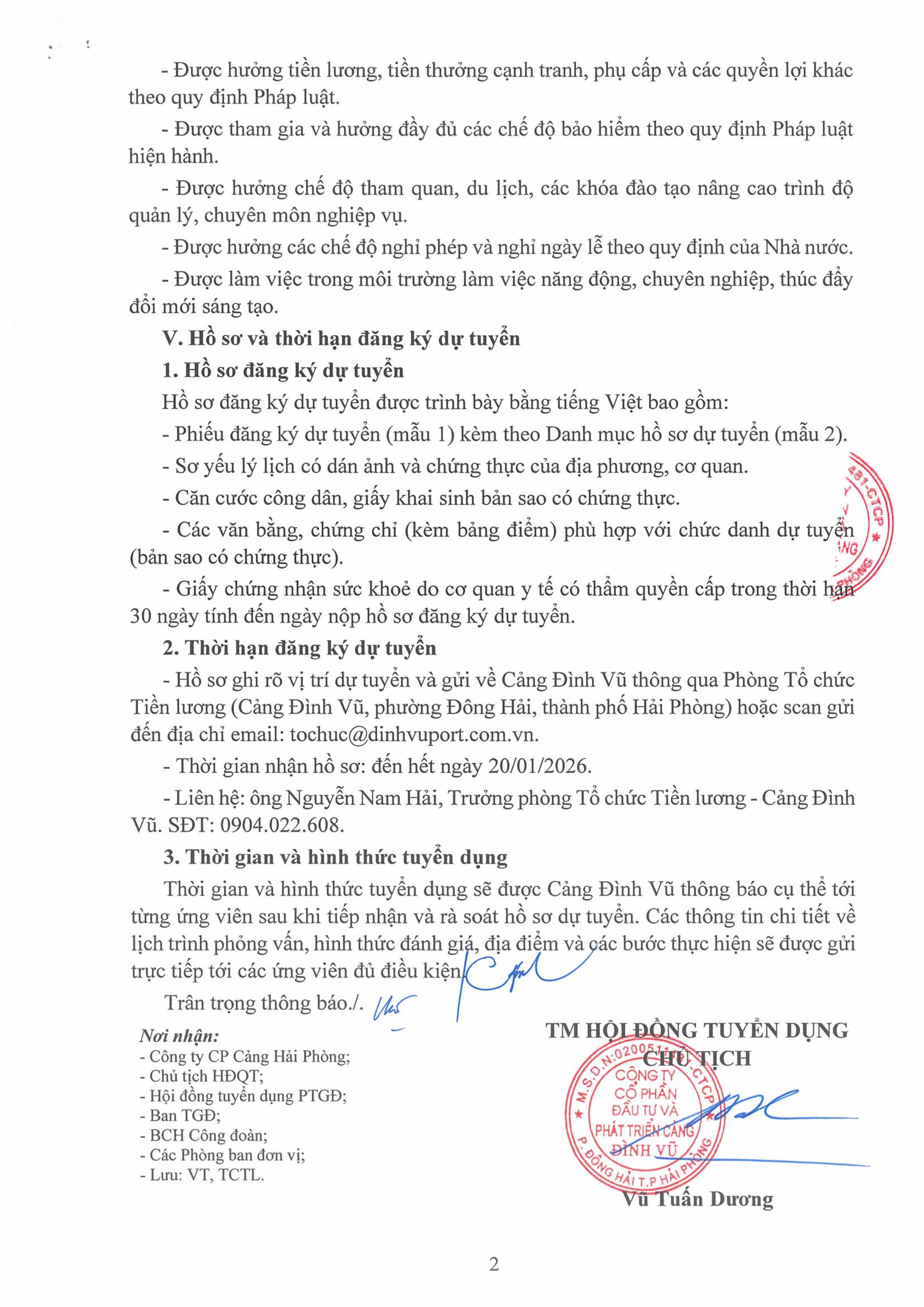 02/01/2026 Thông báo về việc tuyển dụng chức danh Phó Tổng Giám đốc Công ty CP Đầu tư và Phát triển Cảng Đình Vũ Điều kiện ứng tuyển, tiêu chuẩn chức danh và hồ sơ đăng ký xem thêm tại đây Xem thêm